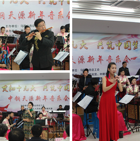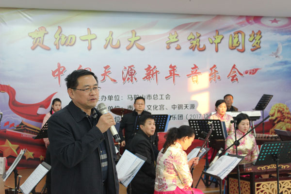 12月21日下午,由馬鞍山市總工會主辦、中鋼天源、市工人文化宮承辦的“貫徹十九大、共筑中國夢”新年音樂會在公司第一培訓教室隆重舉行。市總工會黨組書記、常務副主席李迅出席活動并講話,中鋼天源常務副總經理張野、黨委副書記、紀委書記、工會主席亞海斌、副總經理吳剛等出席活動,公司新區100多名員工到場聆聽了音樂會。