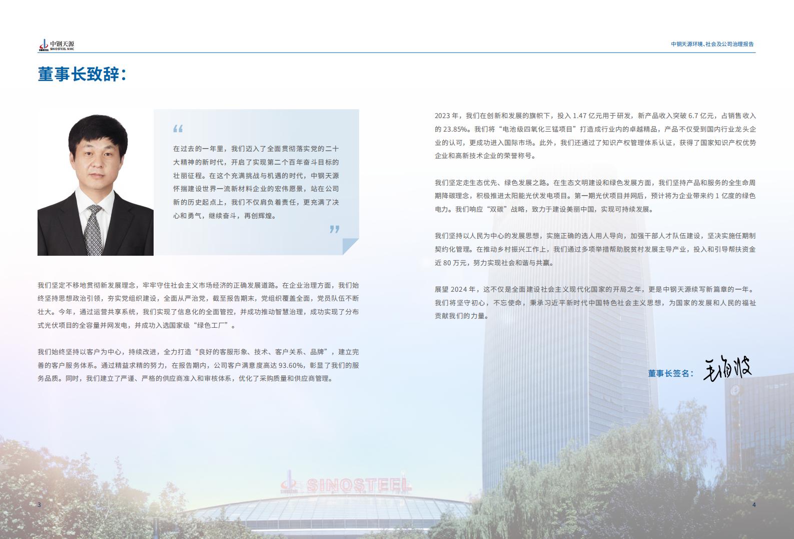 中鋼天源2023年度環(huán)境、社會與公司治理(ESG)